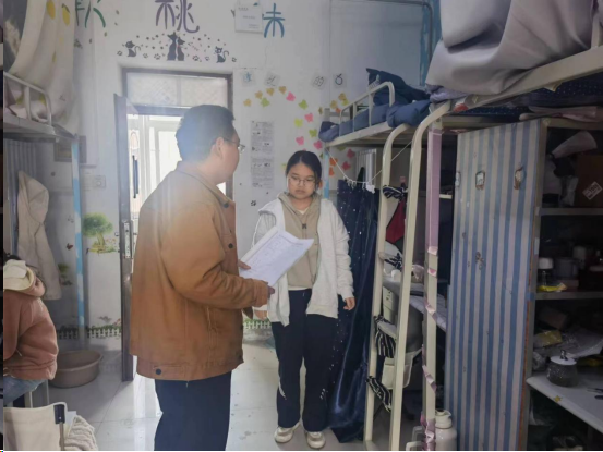 为确保宿舍安全,确保同学们的生命财产安全,学院辅导员每一间寝室都认真排查,对于每一个细节的安全隐患都不放过。在检查宿舍安全问题的同时,提醒同学们严格遵守学校宿舍管理规定的各项要求,及时调整生活作息,认真上课;叮嘱同学们注意安全用电,不使用违规电器,提高警惕,要确保宿舍楼内消防设施和消防安全通道通畅,保护生命财产安全;鼓励同学们养成良好卫生文明习惯,保持青春活力的大学生形象。