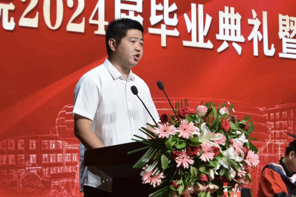 在校生代表、国家励志奖学金获得者、校级优秀学生干部周万昌向即将离开母校的学长学姐致以热烈祝贺和真挚祝福。