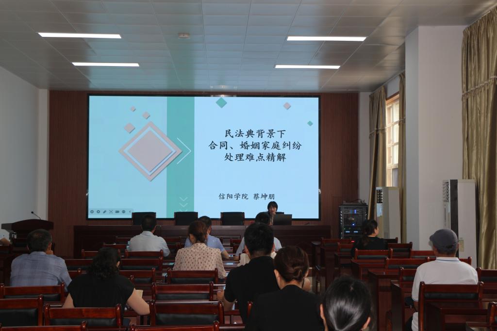 6月19日——22日,罗山县人民法院在罗山县委党校召开人民陪审员专题培训座谈会,我院副教授闫春丽、张奎、蔡坤朋受邀做专题讲座。