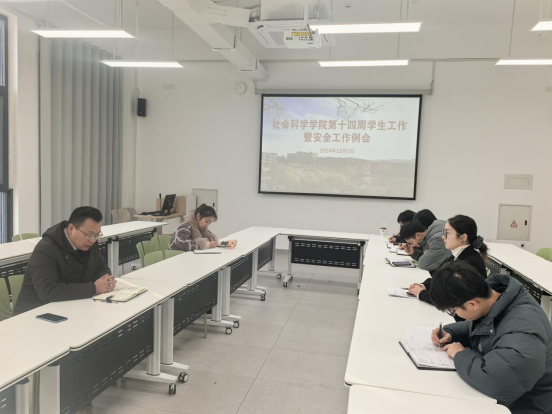 12月6日上午,社会科学学院在南湖校区教二楼509会议室召开第十四周学生工作暨安全工作例会。党总支副书记胡志国,学工负责人陈苗苗及全体辅导员参会。会议由陈苗苗主持。