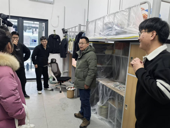 12月30日下午,学院党总支书记胡志国、学工秘书陈苗与全体辅导员对全院学生宿舍进行假前走访活动,将安全保障落实到“最后一公里”。