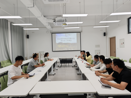 5月27日上午,社会科学学院在教二楼509会议室,召开本学期第十五周学生安全工作例会。学院党总支副书记胡志国、学工干事陈苗苗以及全体辅导员参加了此次会议。会议由陈苗苗主持。