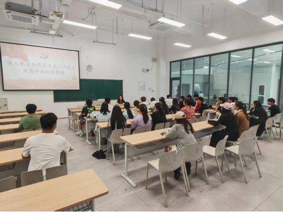 6月12日,社会科学学院在南湖校区教二楼101教室开展关于学习贯彻中央八项规定及其实施细则精神的教育座谈会。学院团总支书记张雪梅、学生党支部书记张傲雪和各班团支书参加了本次学习。