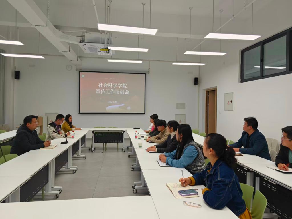10 月 14 日下午,社会科学学院在教二楼 509 会议室召开宣传工作专题培训会,旨在进一步规范学院宣传工作流程、提升宣传内容质量、强化宣传队伍专业素养。学院班子成员、各教研室主任及全体辅导员参加会议。