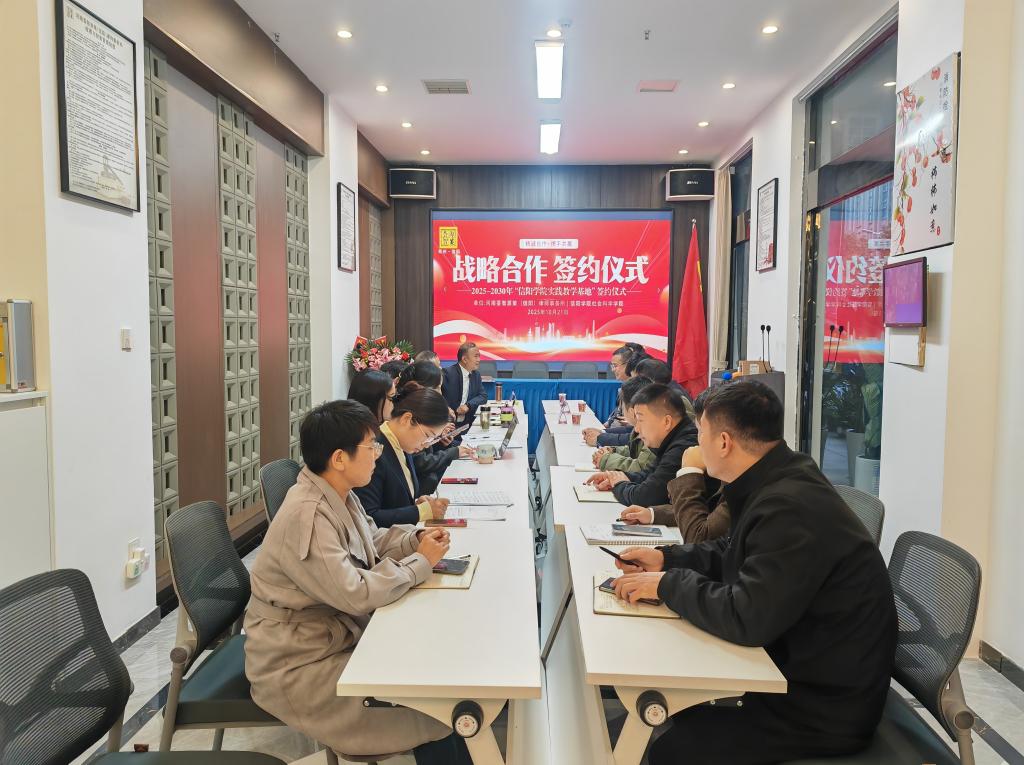 10月21日下午,学院党总支副书记胡志国、法学专业骨干教师王章力、刘君辉一行赴河南荟智源策(信阳)律师事务所开展访企拓岗活动并签订法学专业实习基地协议,受到律所主任易承爽、党支部书记易海燕、副主任王元洁及其他工作人员的热情接待。