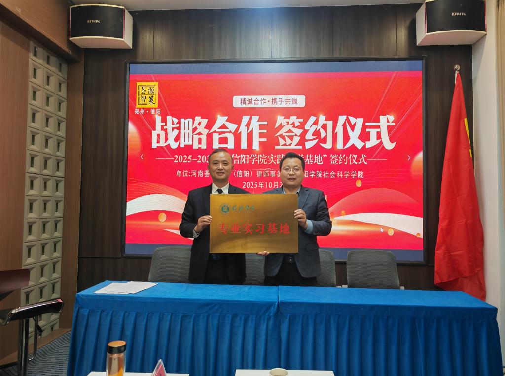 随后双方达成一致意向,签署了法学专业学生实习基地协议,并举行了授牌仪式。
