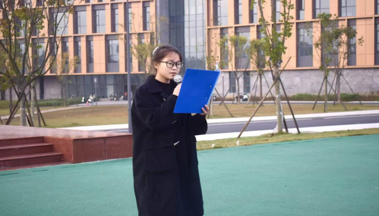 上午7时整,升旗仪式正式开始。学生代表王昱以《立标于心,力行于足》为题进行宣讲,倡导大家从当下的每一小步积累做起,逐步迈向长远目标,切实将抽象的未来构想转化为具体的学习、生活行动从而实现长远发展。