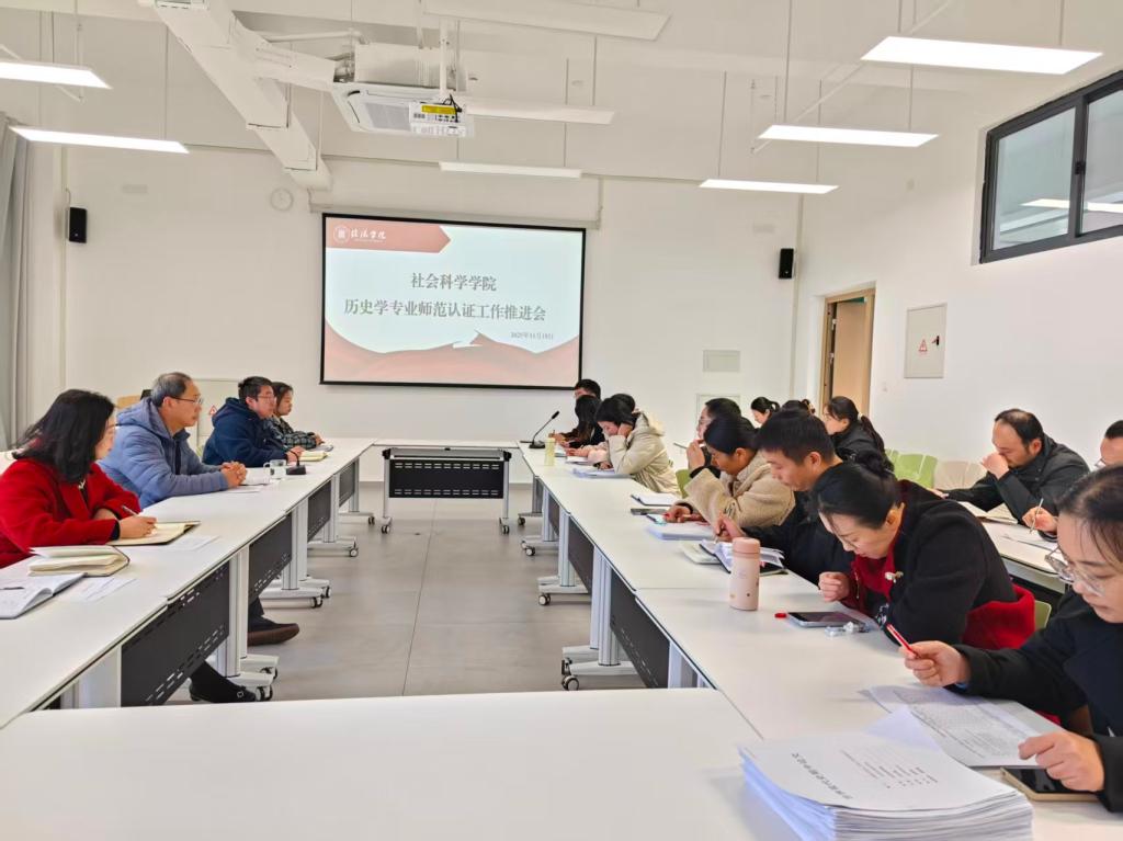 为进一步落实历史学专业师范认证工作,11月18日下午,社会科学学院于南湖校区教二楼509会议室,召开师范认证工作推进会,社会科学学院院长郭志祥、教学副院长寇博文、教学、行政、学工负责人及历史教研室全体教师参加。会议由寇博文主持。