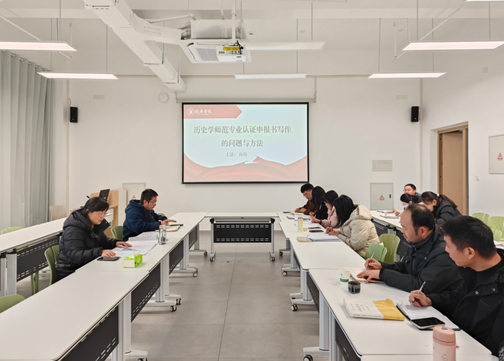 为进一步规范历史学专业师范认证申请书撰写流程,提升申请书质量,为后续师范专业认证工作筑牢基础,11月18日下午,社会科学学院于南湖校区教二楼509会议室成功举办专题讲座。本次讲座特邀信阳师范大学历史文化学院副院长孙炜教授主讲,主题为 “历史学师范专业认证申请书写作的问题与方法”。社会科学学院教学副院长寇博文、学院教学及行政口负责人、历史教研室全体教师参加本次活动,讲座由寇博文副院长主持。