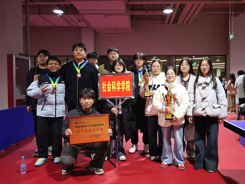 为弘扬团结协作、拼搏进取的体育精神,营造健康向上、充满活力的校园氛围,信阳学院于11 月 24 日至 28 日成功举办第十九届乒乓球比赛。社会科学学院师生组队出征、奋勇角逐,最终斩获多项荣誉,更凭借优良作风获评体育道德风尚奖,在赛场之上展现了社科人的竞技风采与精神风貌。