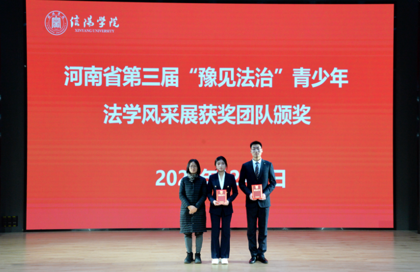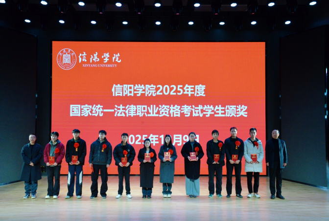 学工干事陈苗苗为信阳学院2024-2025学年学风建设先进集体和先进宿舍颁奖,鼓励获奖集体继续发挥示范引领作用,带动全院营造良好的住宿与学习氛围;教学秘书王娜为河南省2025年“挑战杯”大学生课外学术科技作品竞赛获奖作品颁奖,肯定了同学们在学术科研与创新实践中的努力与突破;行政秘书李海丽为河南省第三届“豫见法治”青少年法学风采展获奖团队颁奖,激励同学们深耕法学专业知识,提升专业素养;教学副院长寇博文为第十届全国学生“学宪法、讲宪法”法治素养大赛获奖学生张艺瀛颁奖,强调宪法学习是法治人才培养的基础,希望同学们以赛促学强化法治思维;教学副院长寇博文、陈光教授共同为信阳学院2025年度国家统一法律职业资格考试通过的学生颁奖,祝贺他们在专业进阶路上取得关键成果;院长郭志祥、党总支书记胡志国先后为学科竞赛优秀指导老师(挑战杯、豫见法治、学宪法讲宪法)及法考优秀指导老师颁奖,感谢教师团队在人才培养中的匠心付出与悉心引领。
