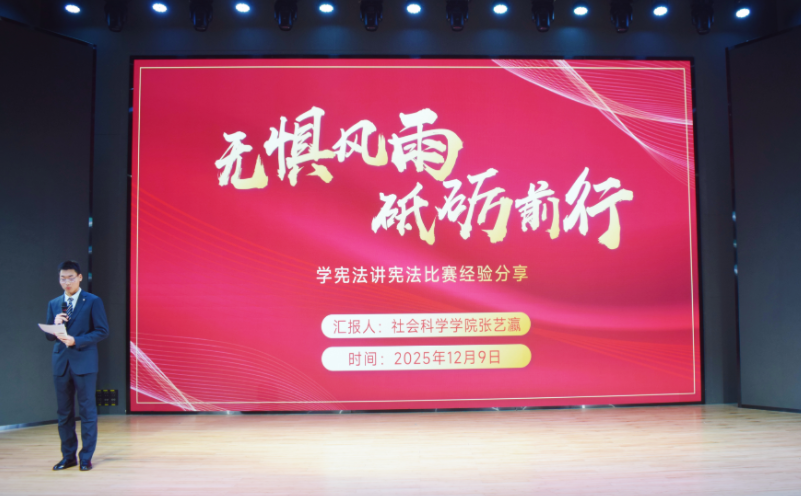 挑战杯学科竞赛一等奖获奖团队负责人王睿泽结合团队参赛经历,分享了从选题构思到反复打磨作品的全过程,强调了团队协作与坚持创新的重要性;“学宪法、讲宪法”法治素养大赛河南省高校第一名、全国二等奖获得者张艺瀛结合自身从省赛夺冠到全国赛场斩获佳绩的实战经历,为在场同学提供了兼具专业性与实用性的备赛指引,助力大家在法治素养提升与赛事竞争中稳步前行。