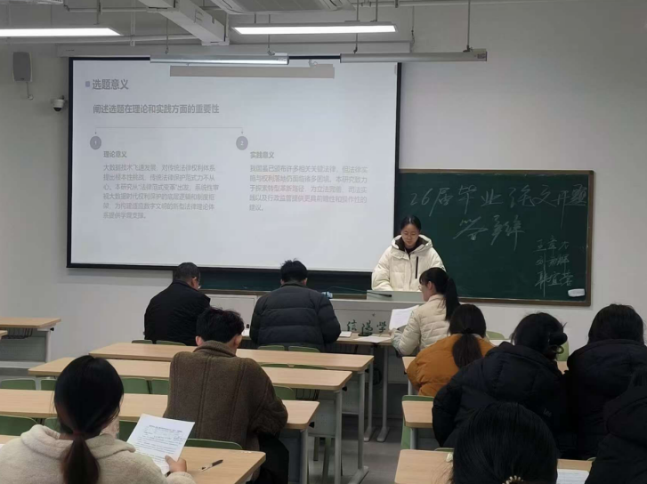 此次开题答辩的顺利开展,不仅及时为学生毕业论文撰写指明优化方向、扫清初期写作障碍,更强化了学生的学术规范意识与专业研究思维。各答辩小组为答辩质量保驾护航,既为学院把控毕业论文整体质量筑牢第一道防线,也为后续中期检查、定稿答辩奠定坚实基础,对提升法学专业人才培养质量、锤炼学生学术研究与实务应用能力具有重要意义。