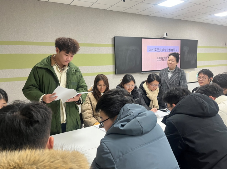 2026年1月6日下午,社会科学学院于南湖校区教三楼210教室举办历史学专业教育研习主题研讨会。本次会议围绕“中学历史主题班会”展开深入研讨,旨在提升历史学专业师范生的教学实践能力与育人素养。会议由学院教学副院长寇博文主持,学院实习指导教师和本科毕业班实习生代表共同参与。