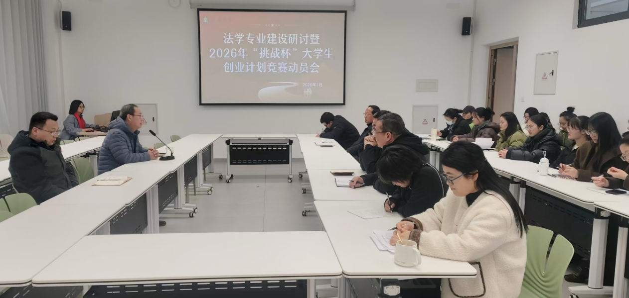 为深入推动法学专业内涵式发展,提升人才培养质量,激发学生创新创业热情,社会科学学院于2026年1月14日组织召开了法学专业建设研讨暨2026年“挑战杯”大学生创业计划竞赛动员会。院长郭志祥、党总支书记胡志国及全体法学教师参加会议。