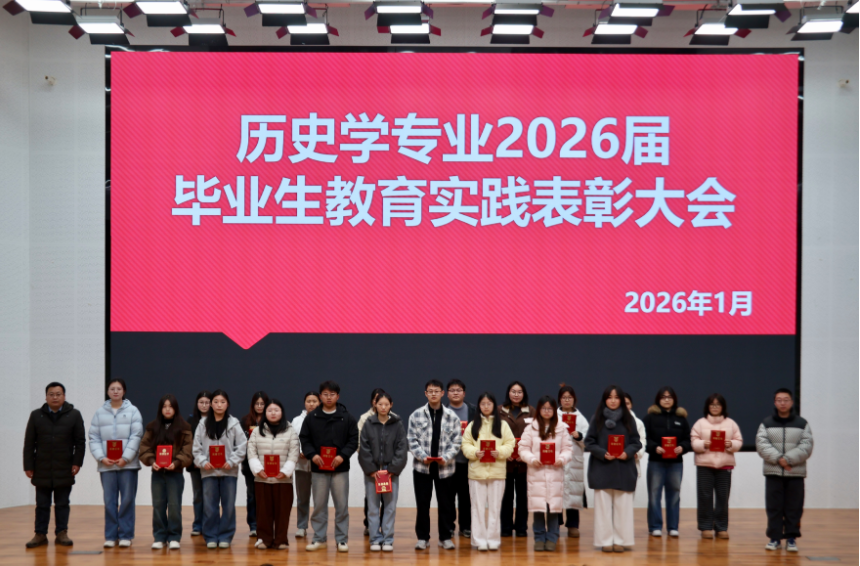 此次表彰大会的召开,不仅对2026 届历史学专业教育实践工作进行了全面总结,表彰了先进、树立了榜样,更激励着全体 2022 级同学以优秀为榜样,明确学习目标、坚定职业信念,为即将到来的教育实践做好充分准备,为未来投身教育事业、实现人生价值奠定坚实基础。