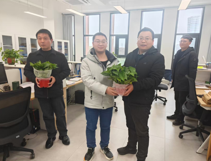 送绿植过程中,胡志国、陈苗苗与教职工们亲切交流,详细询问大家的工作状态与需求,并讲解绿植养护技巧。胡志国强调,办公环境是教职工日常工作的重要载体,添一份绿色,不仅能美化空间、净化空气,更能为忙碌的工作增一份生机与活力。他代表学院向辛勤耕耘教育教学的教职工们致以诚挚敬意,希望这一抹绿色能舒缓大家的工作压力,让大家在清新雅致的环境中保持良好状态。