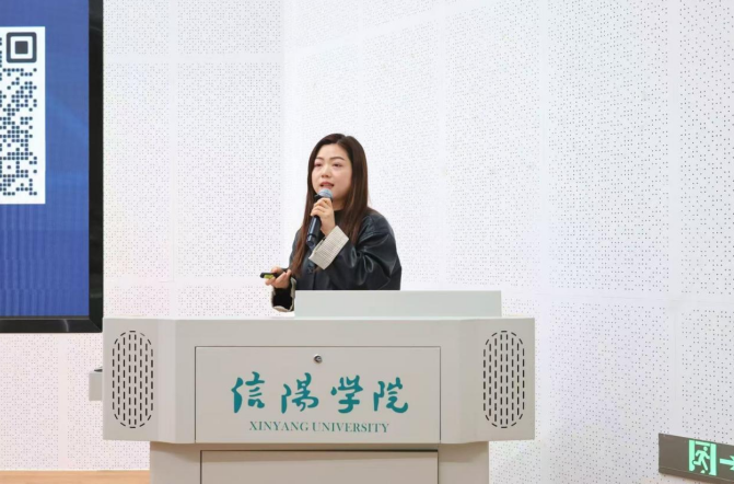 宣讲环节,大别山公证处公证员、信阳市行政立法咨询专家李明珠,结合大学生求职就业实际,讲解就业过程中的权益保护、风险防范与合法维权途径,普及基本公证知识,并与学生现场互动答疑。同时,她还详细介绍了涉外公证的相关法律知识与办理流程,为同学们拓宽法律视野、解决涉外法律问题提供了专业指导。