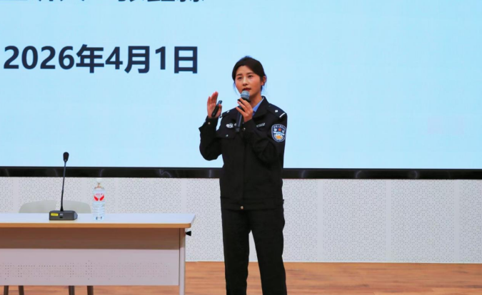 浉河公安分局法制大队张鑫淼警官以电信网络诈骗防范为主题,通过本地真实案例,剖析常见诈骗类型与作案手法,讲解识别技巧与应对措施,提醒学生提高警惕、守住安全底线。