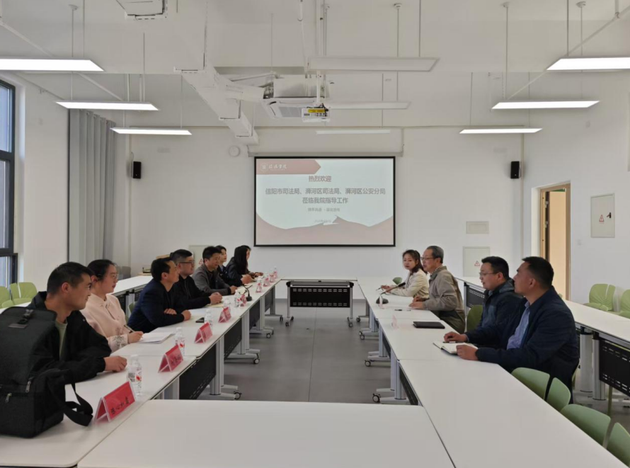 为扎实推进“访企拓岗”促就业专项行动,精准对接法治领域人才需求,拓宽毕业生就业渠道,4月2日,社会科学学院特邀信阳市司法局、浉河区司法局、浉河区公安分局相关责任人来校,开展访企拓岗专项交流活动。学院院长郭志祥、党总支书记胡志国,携法学专业骨干教师及学工负责人参与此次活动。