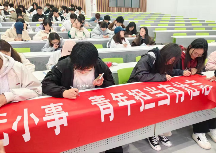 交流环节,同学们结合观影体会与宣讲内容,围绕“青年如何以小事守护国家安全”“国家安全相关法律有哪些”“怎样传承隐蔽战线英雄精神”等畅所欲言,现场交流深入、共鸣不断。问答结束后,学生代表依次上台,在“国安有我,青春有为”主题横幅上郑重签名,以庄严仪式许下维护国家安全的青春承诺。
