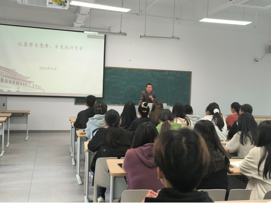 10月29日中午,社会科学学院党总支在南湖校区教二楼303教室举行第十七期入党积极分子培训班开班仪式暨专题党课。学院党总支副书记胡志国、第一学生党支部书记王顺兴、第二学生党支部书记杨俊东与第十七期全体入党积极分子参加了本次学习活动。仪式由王顺兴主持。