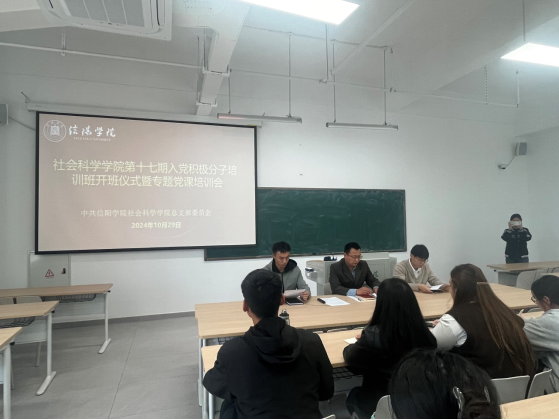 开班仪式上,杨俊东首先宣读了《关于信阳学院社会科学学院第十七期入党积极分子培训班通知》,并就学习纪律提出要求。