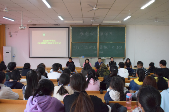 为了进一步推进学习习近平新时代中国特色社会主义思想和党的十九大精神、团的十八大精神,认真学习习近平总书记考察调研河南时的重要讲话精神,深入落实好“全团抓思想政治引领”的工作部署,思想上要先入脑入心,激发青年学生担负起时代使命和时代责任,为实现中原更加出彩努力奋斗,实现中华民族伟大复兴“中国梦”不懈努力,10月31日中午,社会科学学院在社科楼219教室举行2019级新生团校开班仪式暨团课首场专题报告。社会科学学院党总支副书记胡志国、马克思主义学院朱新荣博士、学工干事王晶、团总支书记曹惠、辅导员余洁及2019级学生参加此次开班仪式。会议由王晶主持。