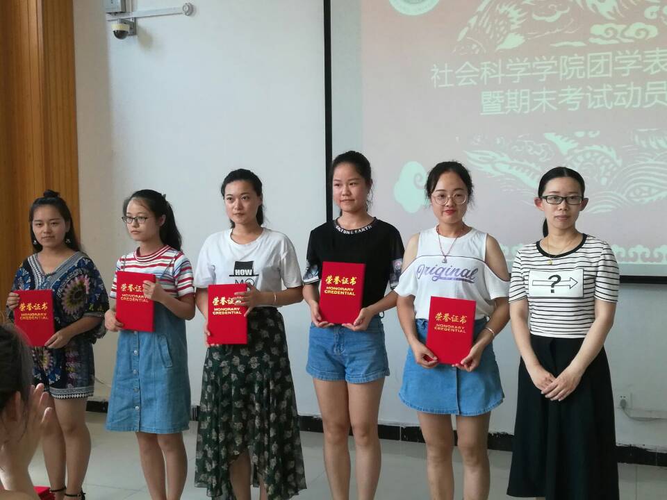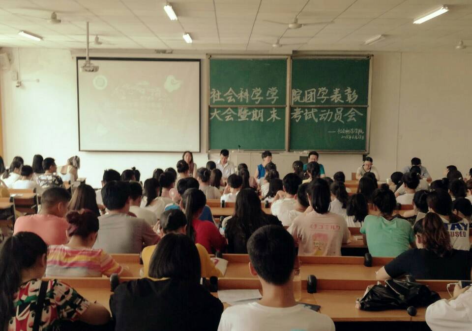 6月28日中午,社会科学学院团学表彰暨期末考试动员大会在社科楼219召开。该院党总支书记李赟、学工秘书刘颖方、学生会团总支指导老师李进、团总支书记徐晓琰、全体辅导员、16和17级各班班委及全体学生会成员。会议由刘颖方主持。