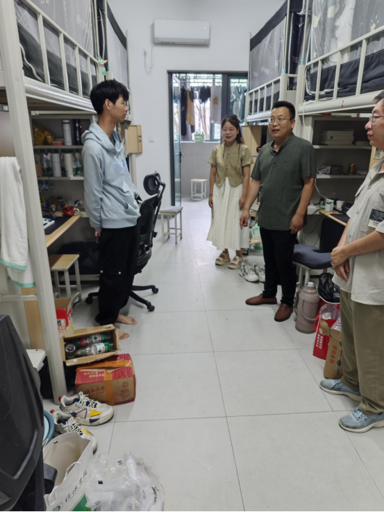 7月9日上午,社会科学学院党总支书记胡志国、教学副院长寇博文、学工干事陈苗苗带领部分辅导员和教师走访留校学生教室和寝室,看望暑假留校复习考研学生。