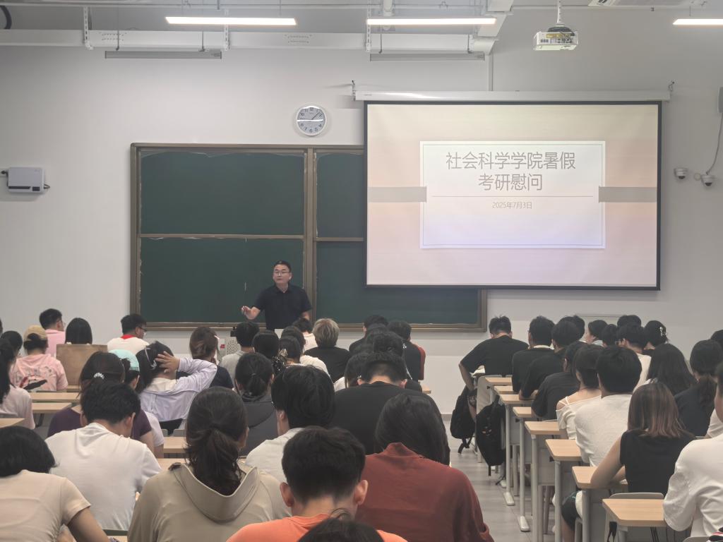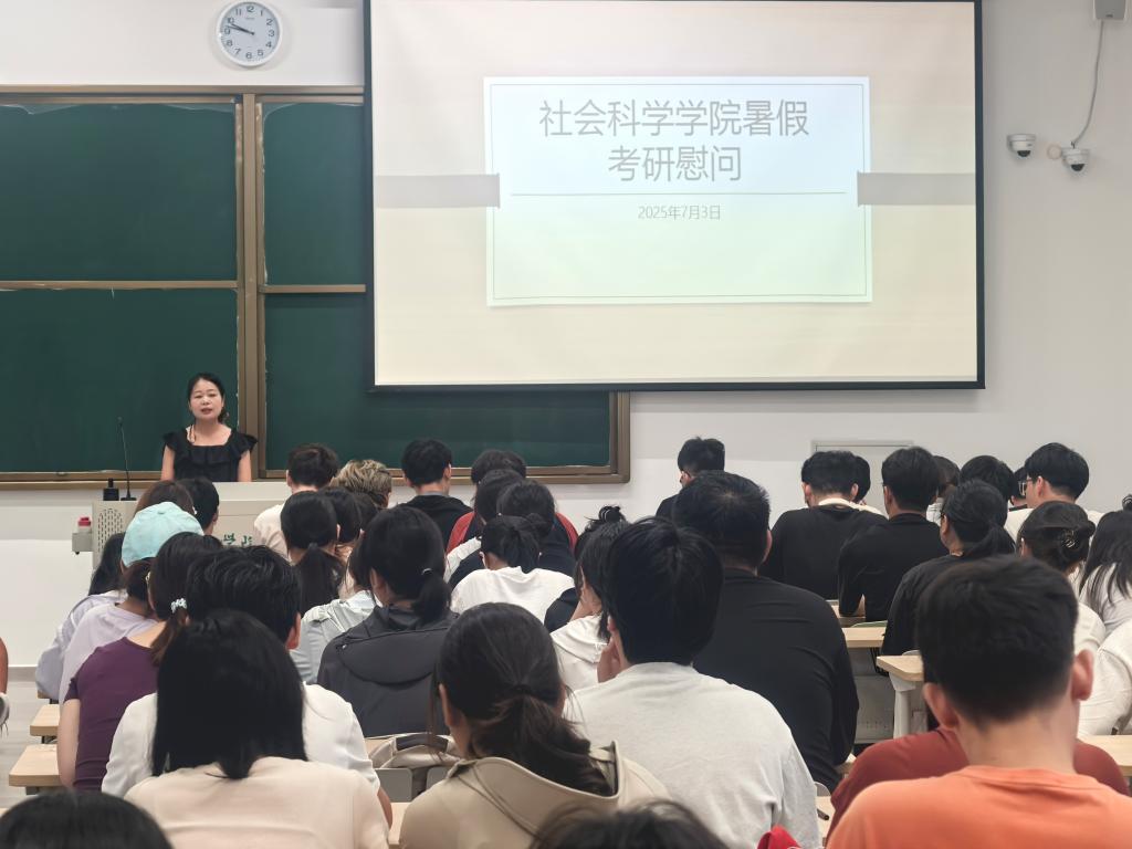 炎炎酷暑,挡不住考研学子求知若渴的脚步,为深入了解暑期留校备考学生的实际状况,传递学院深切的关怀与支持,鼓舞士气,7月3日上午,社会科学学院在教二楼组织开展2026届暑期留校考研学生座谈会暨慰问活动。学院党总支副书记胡志国,教学副院长寇博文,考研负责教师张奎、陈杰,学工负责人陈苗苗及全体辅导员和留校学生参加了此次活动。