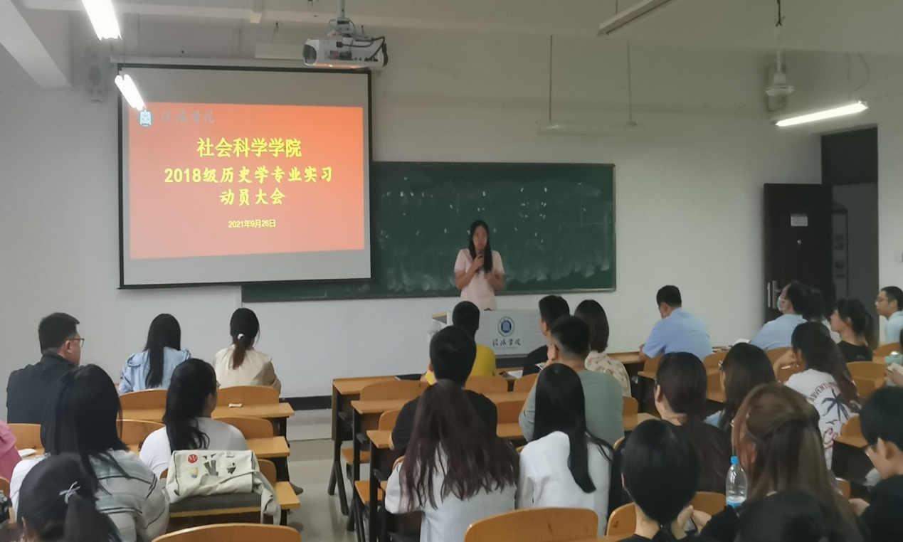 2021年9月26日,社会科学学院在社科楼505教室举行2018级历史学专业实习动员会。寇博文副院长、谭黎明教授、陈杰博士、辅导员韩铁映老师、历史教研室厉芳艺、周青、袁珍、陈功林、孙闯等老师出席此次活动,2018级历史学专业全体学生参加。动员会由王燕红主持。