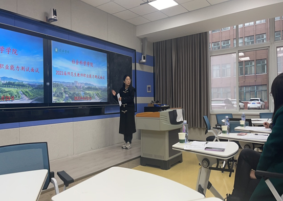 为贯彻落实《河南省教育厅办公室转发教育部关于推进师范生免试认定中小学教师资格改革的通知》(教师函〔2022〕35号),我院高度重视师范生教育教学能力考核工作,结合教育部和省教育厅要求进一步完善考核工作方案,4月23日下午社会科学学院组织2023届历史学专业参与免试认证的毕业生在人文楼参加了教师职业能力测试面试。