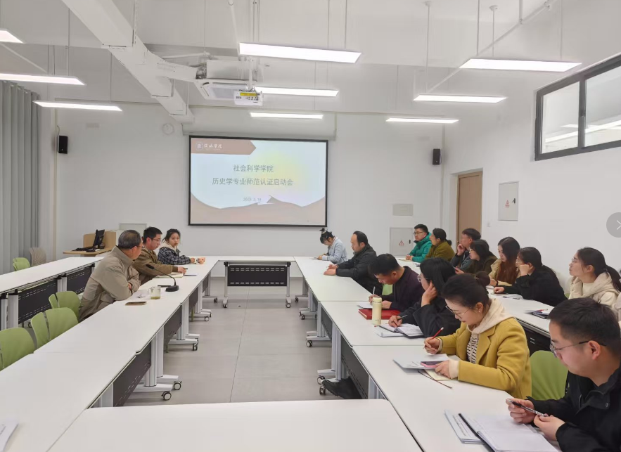 为统一思想、提高认识,扎实做好历史学专业师范认证工作,3月18日,社会科学学院在509会议室召开历史学专业师范认证启动会。院长郭志祥,教学副院长寇博文,教学、行政和学工口负责人,历史学教研室全体教师参加会议。