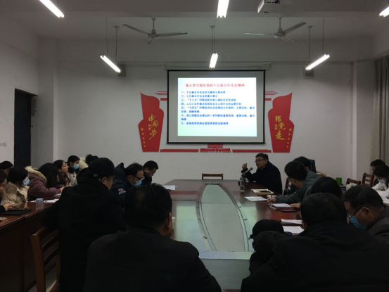 为进一步深入学习党的十九届五中全会精神,12月9日上午,我校马克思主义学院邀请河南大学刘德定教授在社科楼107作《十九届五中全会精神解读》专题讲座。学院名誉院长、党总支副书记胡志国、教学副院长陈华林,以及全体思想政治理论课教师参加了此次讲座。名誉院长主持了本次学术讲座。