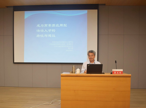 鲁会长围绕《关于坚持德法兼修实施卓越法治人才教育培养计划2.0的意见》展开报告,阐明高素质应用型法治人才的重要特征,即要具备正确的政治信念、良好的职业操守、丰富的专业知识和过硬的处事能力。他指出,成为新时代高素质应用型法治人才是时代的召唤、社会的需要、师长的期盼,法学专业的学生要理解成为高素质应用型法治人才的意义所在。最后,鲁会长向同学们提出了成为高素质应用型法治人才的路径建议,成为高素质应用型法治人才是大学生个人之事。个人之事,需要十分努力:行大道、观大势、识大局、立大志、发大愿、吃大苦、抓大事、出大力、守大节、创大业。