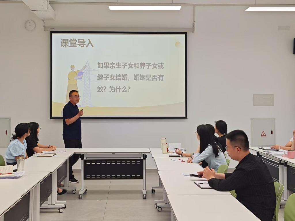 在实操环节,张老师以相关法条为蓝本,生动演绎BOPPPS模型在具体教学中的应用。通过这种教学设计让枯燥的法条“活”了起来,学生真正成为知识的建构者。