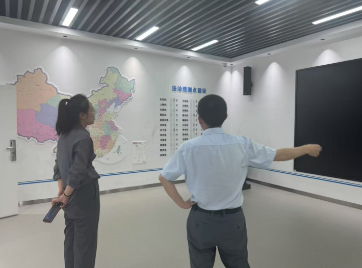 座谈会上,双方就法学实验室建设、模拟法庭教学及法律信息化应用等议题展开深入交流。方玉珍老师就LETS系统进行具体的演示操作。胡晶老师结合信阳学院法学实验课程的实际情况与对方交换了意见。在实验室实地参观环节,重点前往法律实训室、模拟法庭以及法治观测实验室进行了考察学习。